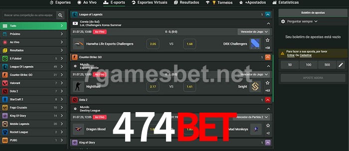 A aposta 474Bet oferece aos jogadores a experiência mais conveniente de apostas em eSports!